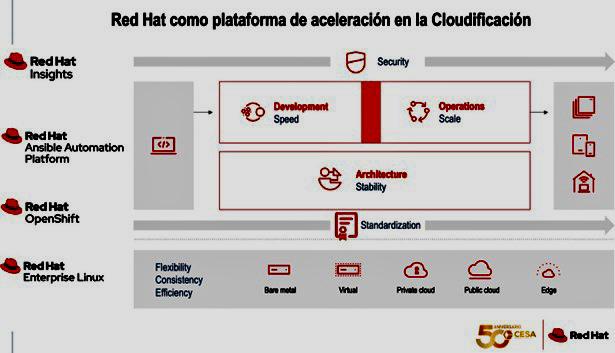 Red Hat es la herramienta que CESA pone a la disposición de las empresas y organizaciones costarricenses, es el sistema operativo diseñado para la estandarización debido a que es un ambiente multiplataforma que cumple con 3 pilares básicos para la ruta de viaje a la nube: Velocidad, Estabilidad y Escalabilidad. Estos 3 trabajan en sinergia para poder apoyar a las organizaciones en emprender un viaje a la nube híbrida estandarizando las cargas de trabajo.