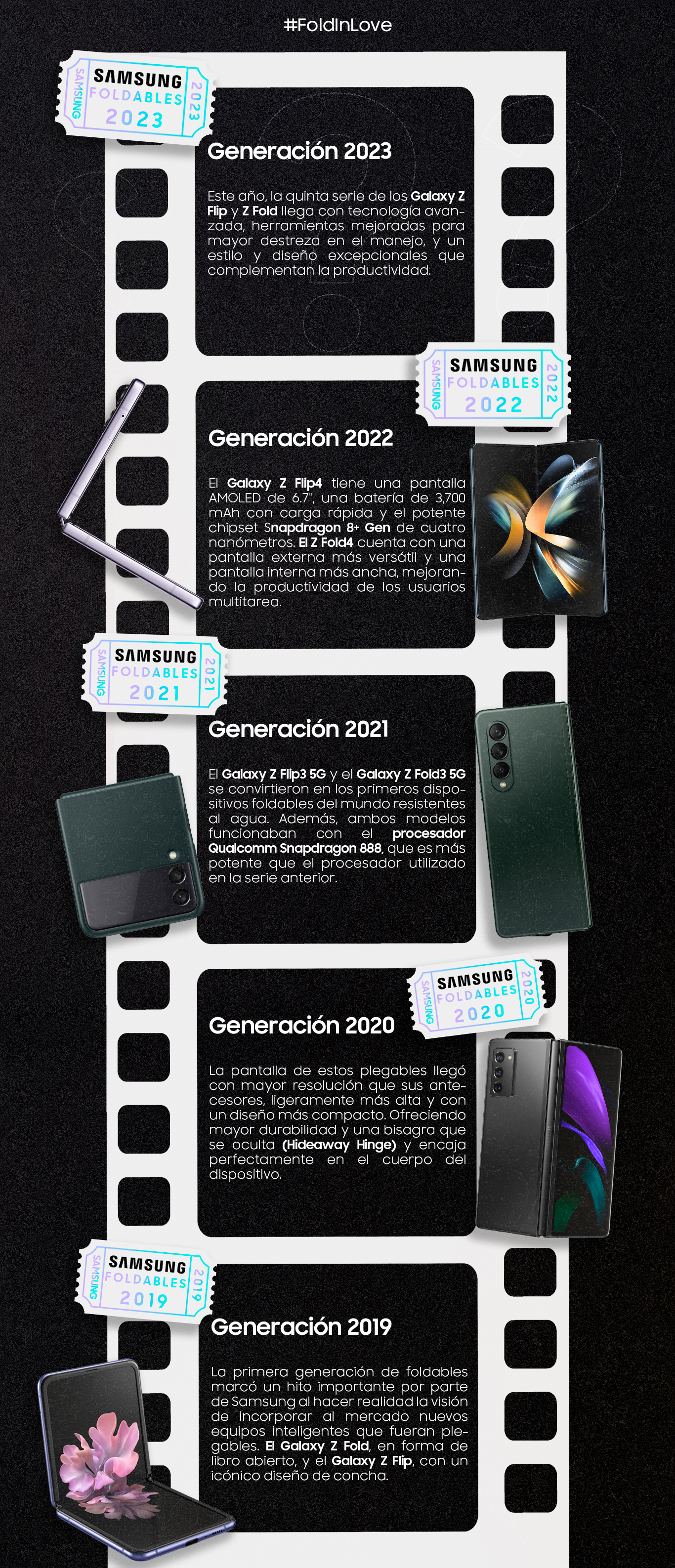 Samsung en su afán de renovarse y de marcar un precedente en la tecnología móvil, introdujo por primera vez el concepto de pantallas flexibles en 2011 y, después de una década, lanzó oficialmente sus primeros dispositivos móviles plegables, creando una categoría completamente nueva. La hazaña se alcanzó con el Galaxy Z Fold, el primer smartphone de esta serie y con el que la marca surcoreana comenzó el año 2019 su legado de foldables.