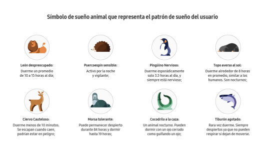 En total, estas representaciones forman parte del programa Sleep Coaching, integrado en la plataforma Samsung Health, y están personificadas por ocho animales diferentes. Además de informarte sobre la calidad de tu sueño, te ofrece consejos prácticos para mejorarlo, permitiéndote aprovechar al máximo tus noches de descanso. Al fin y al cabo, es durante este periodo cuando recargamos nuestra energía, favoreciendo una vida más saludable.