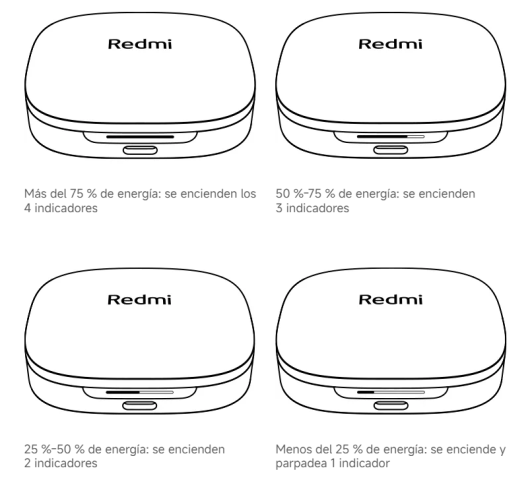 Los Redmi Buds 6 mantienen un diseño similar al de su predecesor, con un estuche rectangular que se abre y cierra con facilidad. El acabado mate en la parte superior e inferior del estuche resiste huellas y rayones, mientras que el lado lateral es brillante. Este año también viene con la entrada USB-C para carga y una barra led que sirve de indicador de porcentaje de batería.